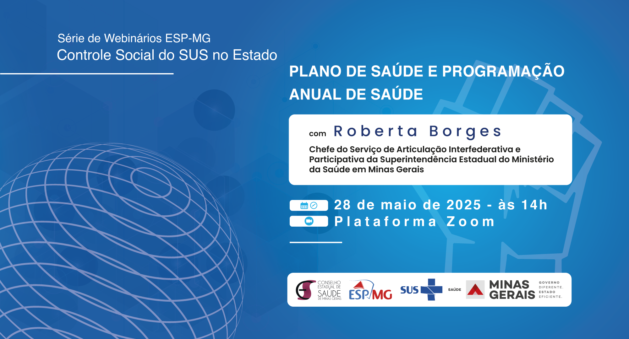 Na quarta-feira (28/05), das 14h às 17h, acontece a terceira edição de 2025 da série de Webinários: “Controle Social do SUS no estado”. A atividade é promovida pela Escola de Saúde Pública de Minas Gerais (ESP-MG), em parceria com o Conselho Estadual de Saúde de Minas Gerais (CES-MG), é online e aberta para pessoas interessadas no tema.